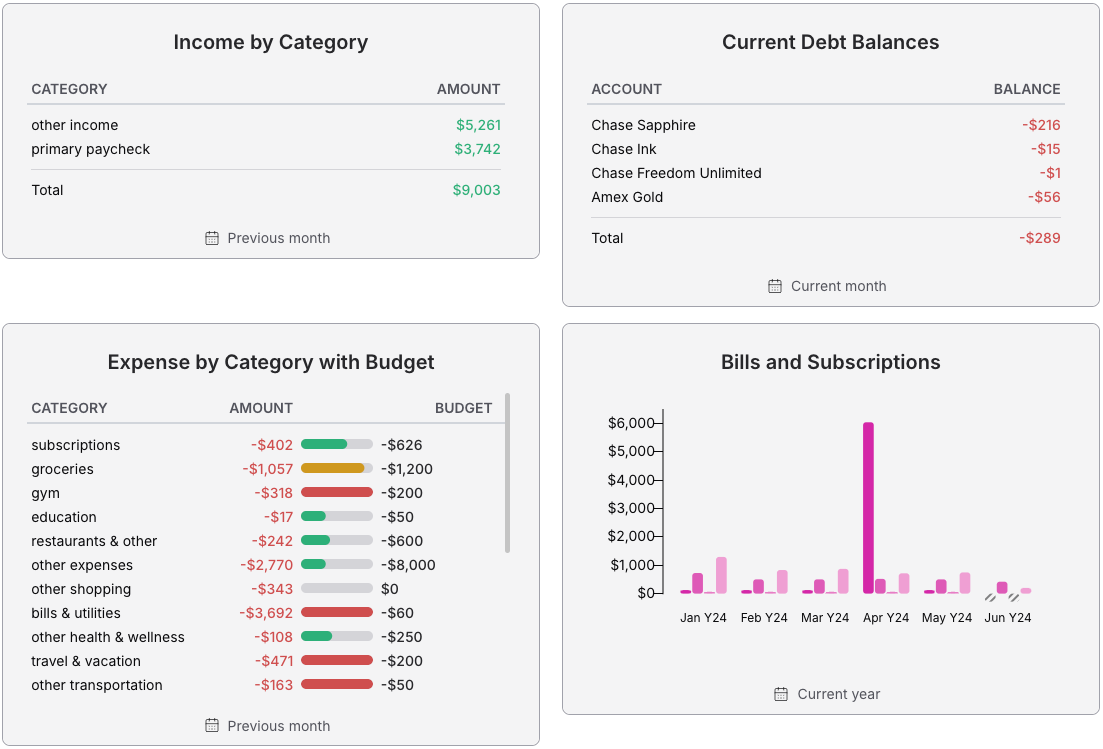 Since your transaction data is stored in a private Google Sheet, you can either update it manually or use an automation tool to pull data from other sources, such as your bank’s API (though not all banks support this).